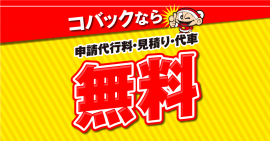 コバックなら申請代行料無料、見積もり無料、代車無料